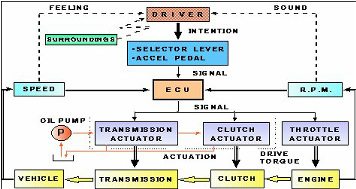 | 特徴 | 従来のマニュアルトランスミッション、乾燥単板クラッチを用い、ベテランドライバーの運転操作や感覚を人間工学的に解析し、人間が手足で行う運転動作の大部分を電気-機械系に置き換え、場合によっては人間以上の操作を行うシステム。 1.自動変速、手動変速が選択可能 2.燃費がよく、バラつきが少ない 3.初心者でもM/Tの運転が容易 4.クリープな安全性が高い 5.自動変速車で押しがけが可能 |