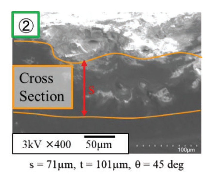 その結果、デポジットは運転時間5時間以降100時間まで、約0.1㎜の厚さで一定となった。またこのデポジット表面をSEMで観察したところ、いくつかの層が重なった構造が観察された(図6)。