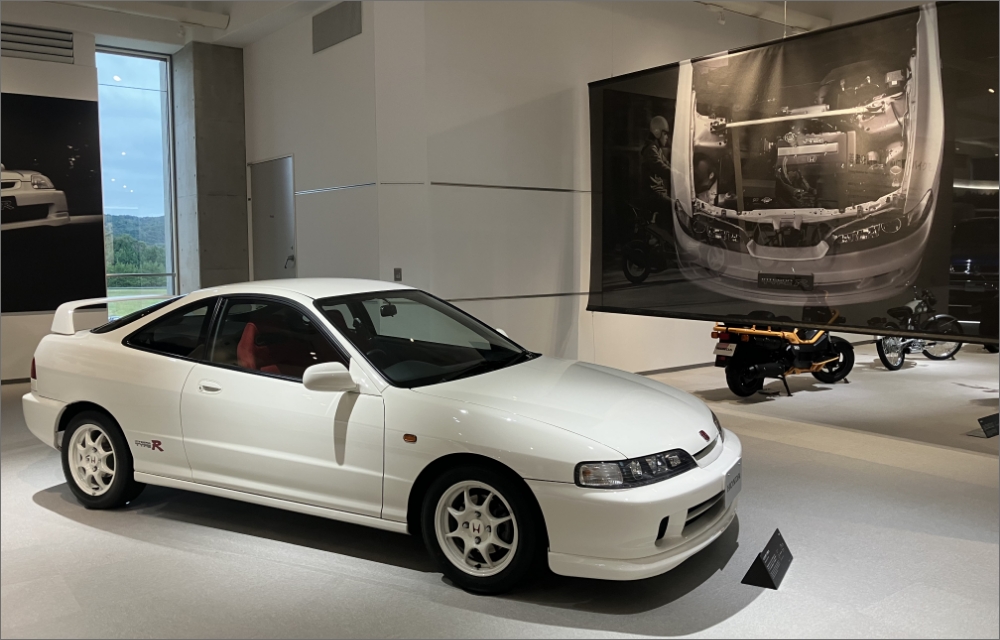 1989年、ホンダは量産乗用車用エンジンとして世界で初めて、バルブタイミングとバルブリフトを同時に切り替える可変バルブ機構「VTEC(Variable Valve Timing & Lift Electronic Control System)」(図5)を実用化し、1.6L直列4気筒DOHCエンジンB16AとしてINTEGRAに搭載した。VTECは、高回転域での高出力性能と低回転域での扱いやすさという、従来は両立が困難であった特性を同時に実現するために開発された革新的な技術である。筆者はこのVTECエンジンの開発に携わることが出来たので、その当時を紹介する。開発現場で初めてVTECのロッカアーム現物を見た際、詳細構造を確認したくなり触っていると、内部のスプリングやピンが飛び出してしまい、なかなか元に戻すことが出来ず、焦った記憶がある。恐らく同様な状態になり、困った人多かったのだろう、数日後にはロッカアームをアッシー状態に固定する治具が作成された。当時のホンダでは、新技術開発が積極的に推進されており、新開発エンジンの必要条件として、世界初や世界一の新技術導入が求められていた。本エンジンの目標出力はリッター当たり100PSであり、4サイクル量産乗用車NAエンジンとしては当時世界最高の出力である。排気量1.6Lで160PS/7800rpm、レッドゾーン8000rpmという高回転化の課題も克服しなければならなかった。このエンジンの製品化にあたっては、高回転対応を含む複数の新技術が開発され、各種課題の検証・克服を経て、量産乗用車として初めてVTECが実用化された。また今回の探訪時、Honda Collection Hall(HCH)に展示されていた車両は、初代VTECエンジン搭載車両INTEGRAの後、1995年に発売されたINTEGRA TYPE R(図6)の車両である。排気量1.8L 200PS/8000rpm(リッター111PS)で、量産エンジンでありながらヘッドポート研磨を手作業で行うなど、徹底した高性能化が図られている。VTEC技術は進化を続け、1991年にはSOHCエンジンで燃費向上を目的としたVTEC-Eが開発された。このエンジンは吸気バルブの片側を休止させることでリーンバーン(希薄燃焼)を実現し、低燃費・低排出ガスを達成した。さらに1995年には低・中・高回転域切り替えの3ステージ化、2003年には、V6の片側バンク3気筒を休止するVTEC-VCM(気筒休止)など、軽自動車から後述するスポーツカーNSX、HEV車など、ホンダのほぼすべてのエンジン骨格に適用されている。