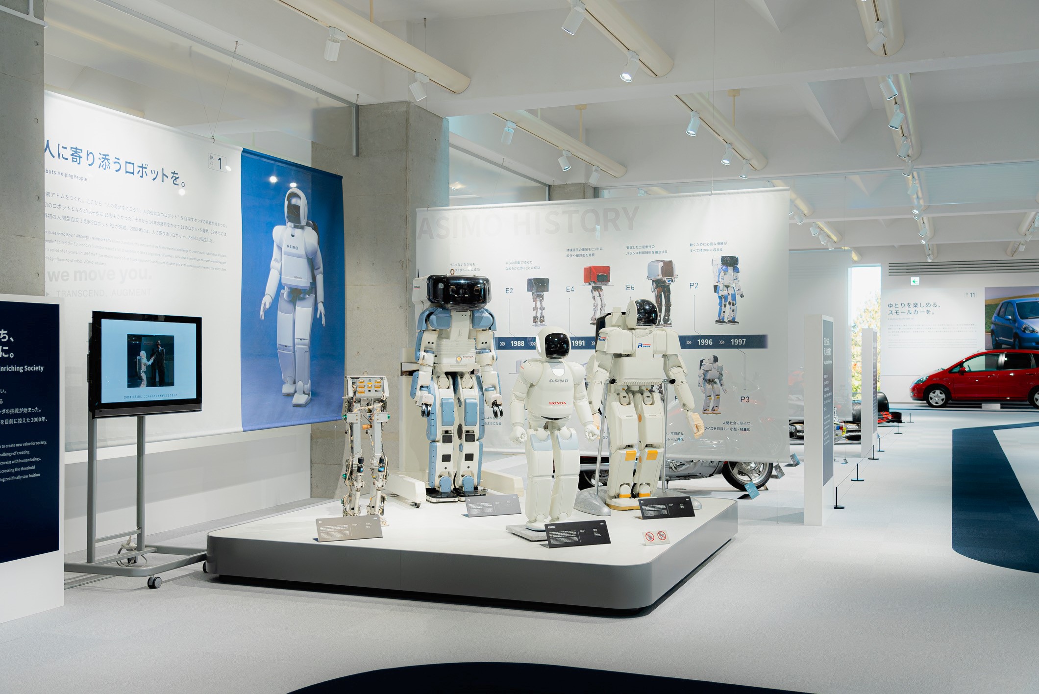 3階北フロアでは、ホンダが取り組む最先端ロボティクス技術(ASIMOなど)の研究開発や、航空機分野への新規参入など、従来の枠組みを超えた新たな価値創造への挑戦の歩みを紹介している。創業以来受け継がれてきた「夢の実現」への想いを基盤とし、ホンダは技術領域の拡大と革新に果敢に挑戦し続けている。展示では、ASIMOに代表される人に寄り添うロボットの開発、HondaJet Eliteなど航空機分野への進出、第4期F1での戦いなど、ホンダが技術革新を通じて社会に新たな価値を提供し続ける物語が描かれている。