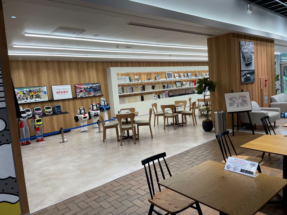 展示物だけでなく、館内の設備も充実しています。ミュージアムショップでは、ミニカーやアパレル、クッキー、ガチャガチャなど幅広い商品が揃っていて、ついつい時間を忘れてしまいます。私は子どもへのお土産にクッキー缶を購入しました。
