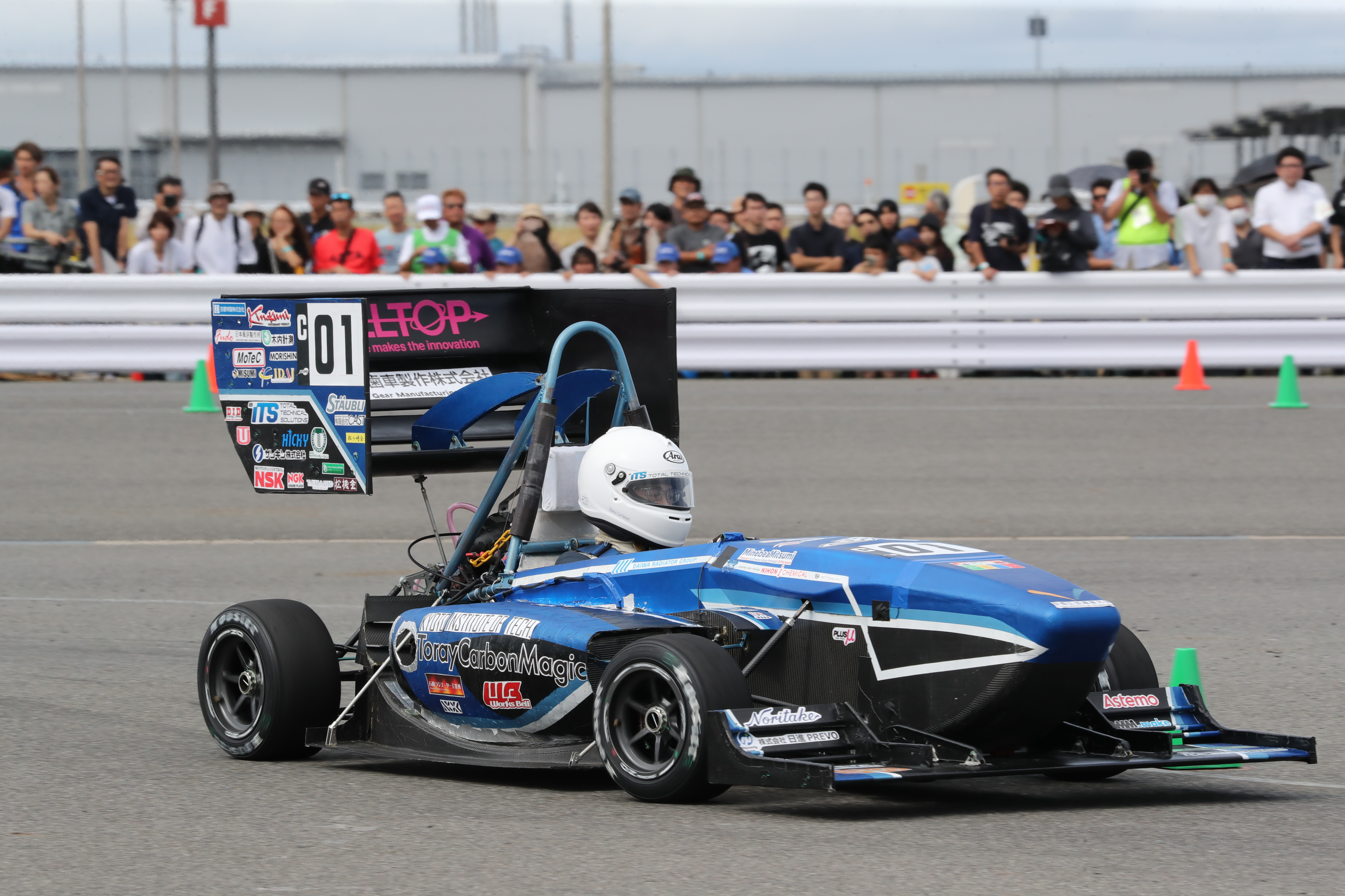 「コスト・製造」「プレゼンテーション」「デザイン」などの 静的審査 に加え、「車検」を経て、「アクセラレーション」「スキッドパッド」「オートクロス」「エンデュランス」「効率」の 動的審査 を行い、車両性能のみならず総合的なものづくり力を競います。